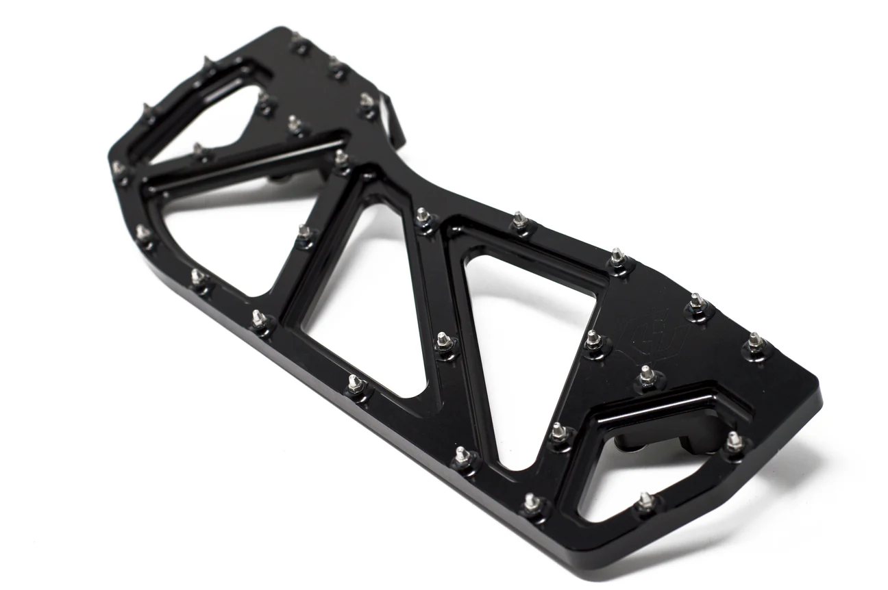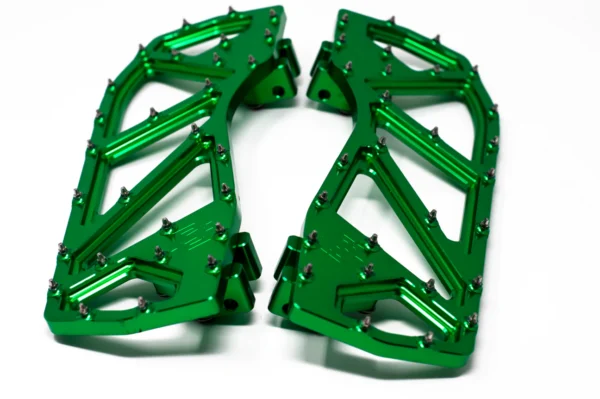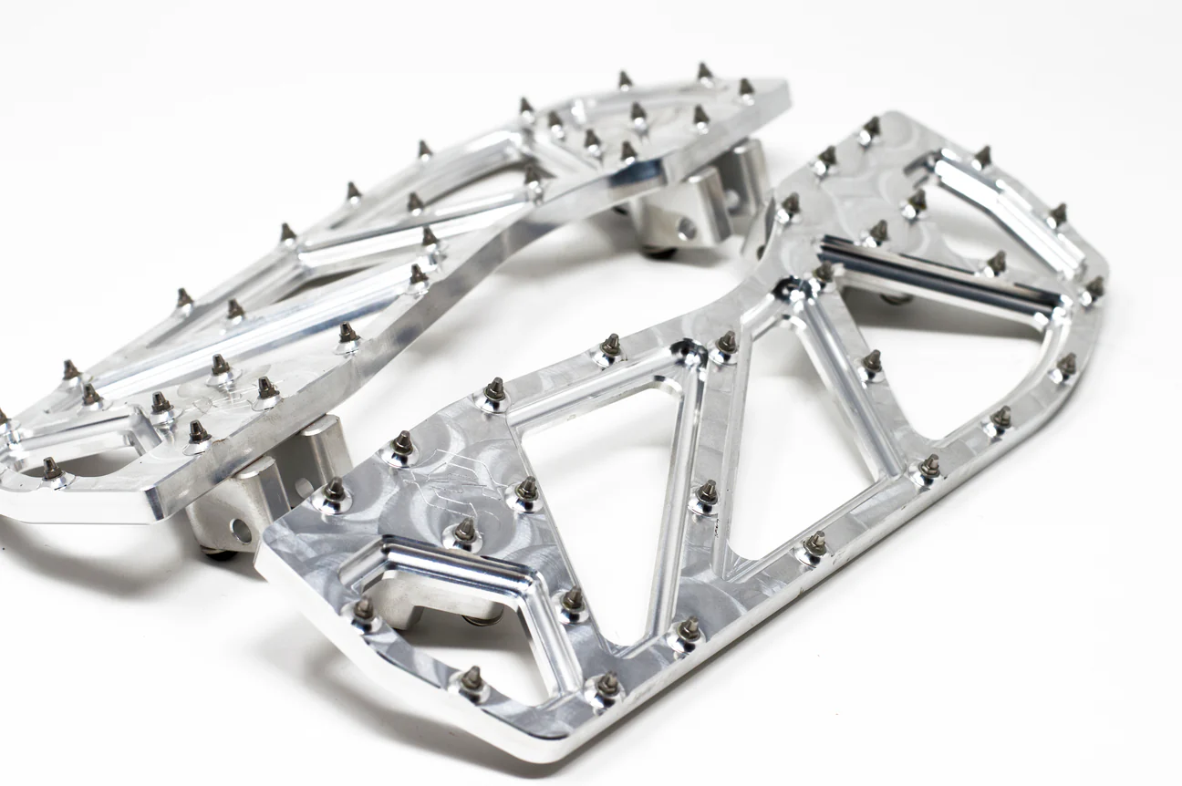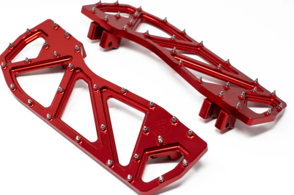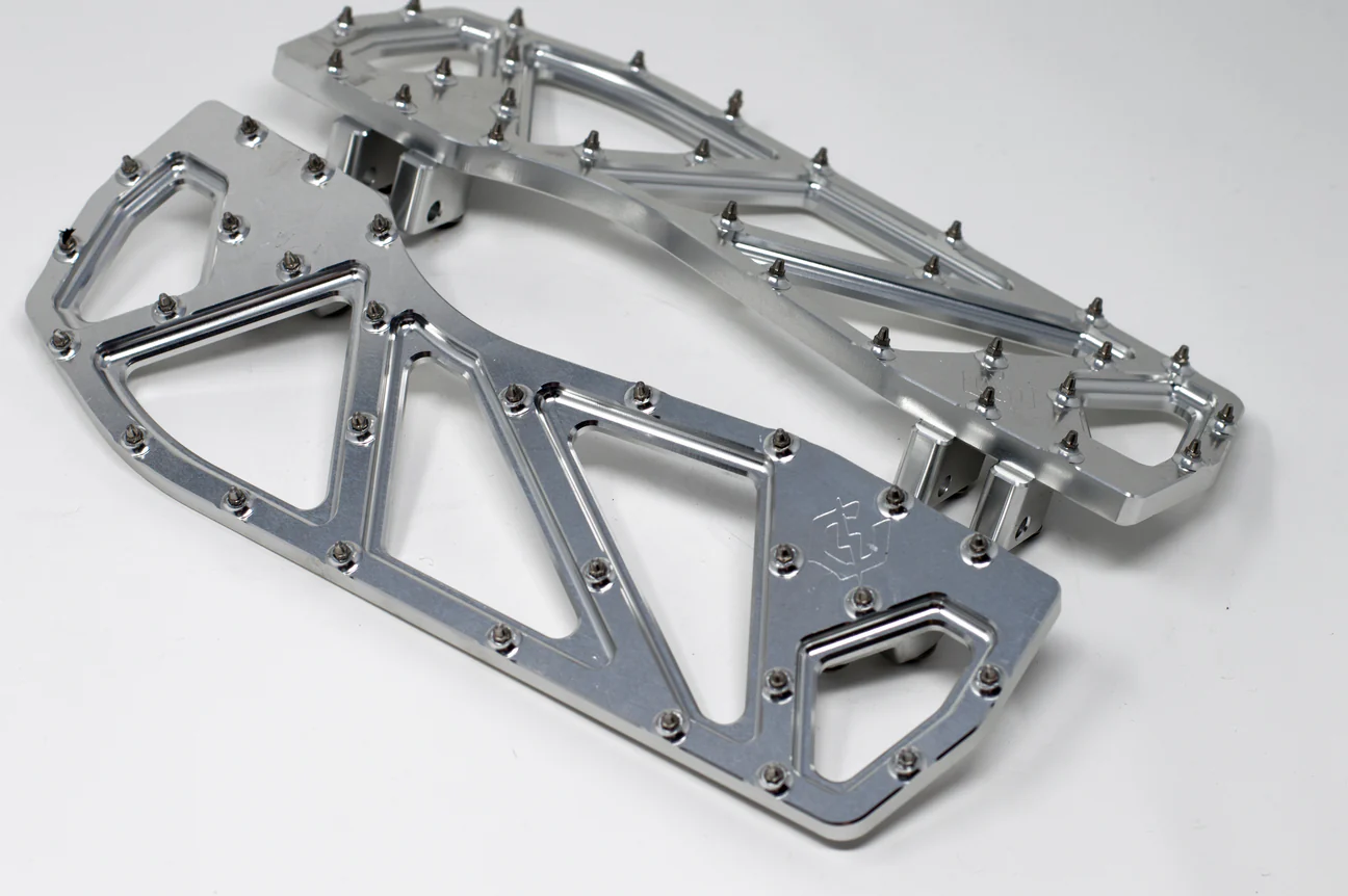 We are super excited to introduce our new Bagger MX Floorboards. These bad boys are made from 6061 T6 alloy aluminum by CNC machining. These materials are up to 50% Lighter than most stock floorboards. Color anodizing surface treatment helps improve the corrosion resistance and gives a badass custom look. The comfortable serrated foot surface area gives you a wider area for your feet and provide a good bite on the bottom of your shoe. All fastener are made from stainless steel for wear-resisting and resisting corrosion. Our Floorboards measure in at 12 x 4.5 inch giving you a large area for optimum comfort.